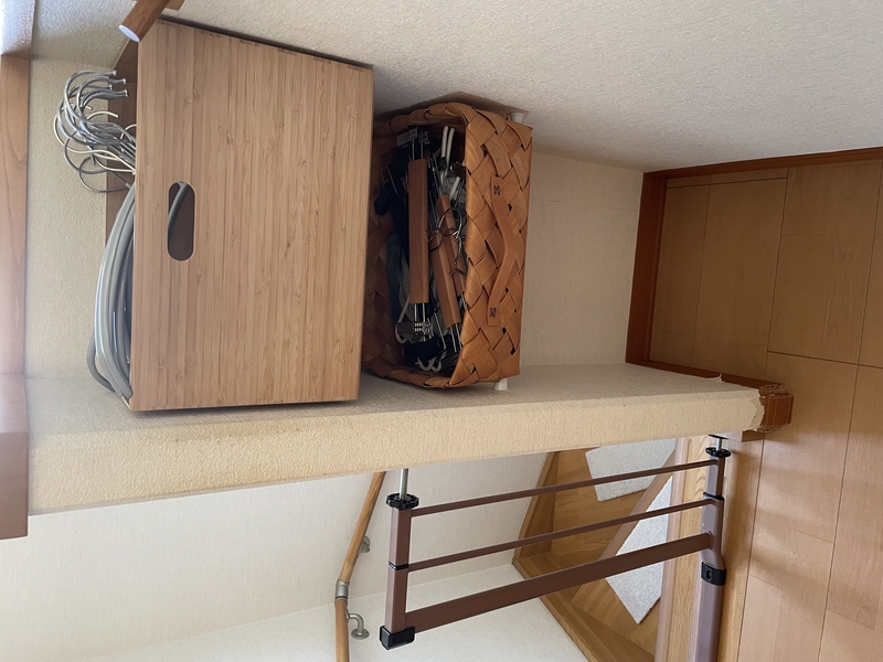 ちょっとした書き物や作業をすることが多いテーブルの上は、気を抜くとすぐに乱雑な状態に・・・。そんな時は、テーブル下に常備している浅型バスケットをサッと取り出して、散らかった小物や文具類を中に片付けておけば、いつでもすっきりとした状態をキープできます。