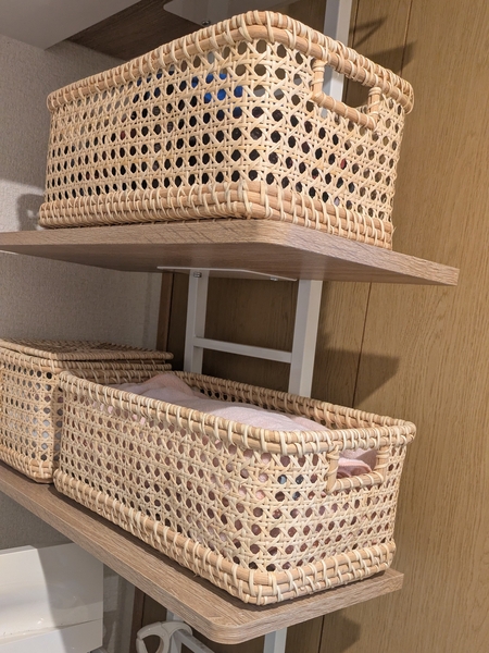 尚、ラフな編みの布類は、ラタンのささくれに引っかかってしまうことがあります。布類を入れる際には、その点、ご注意ください。