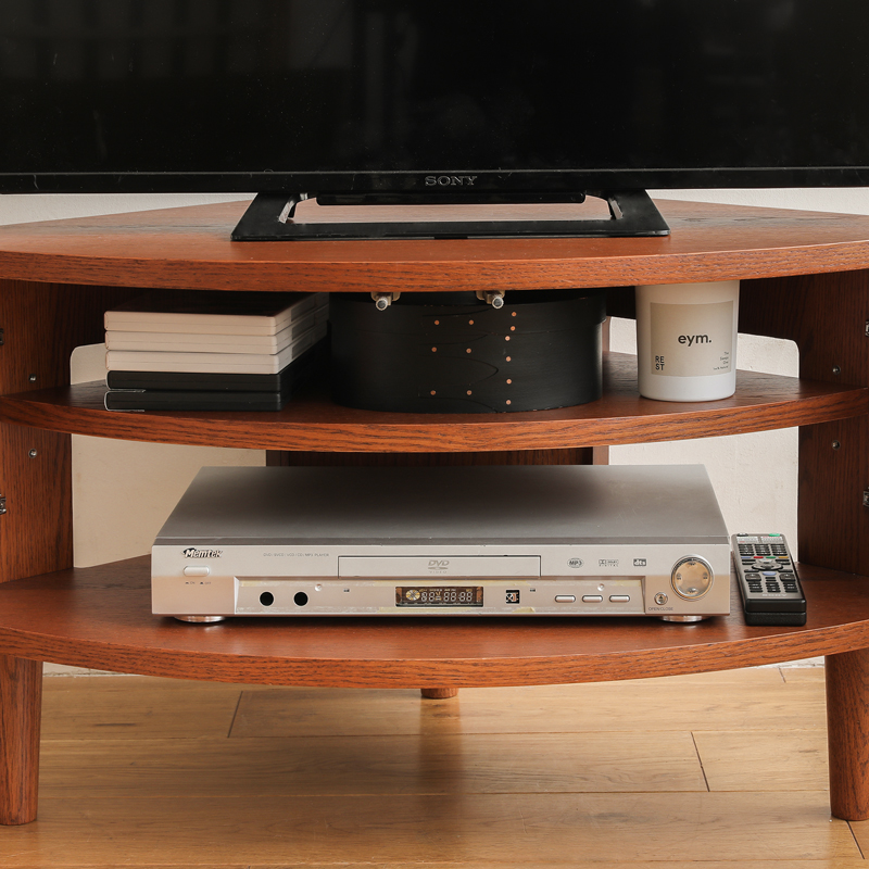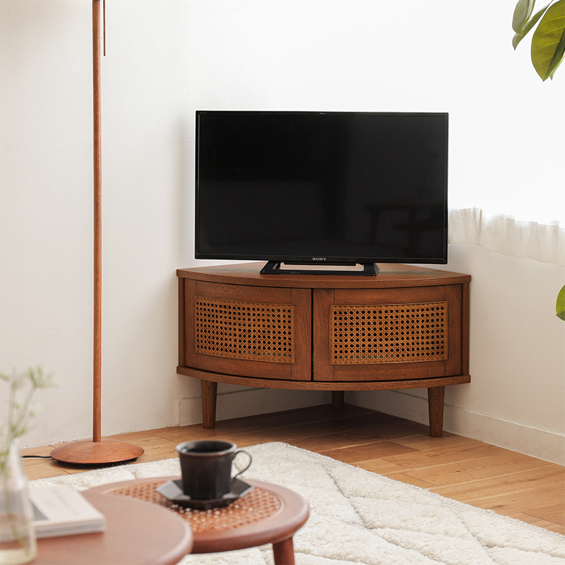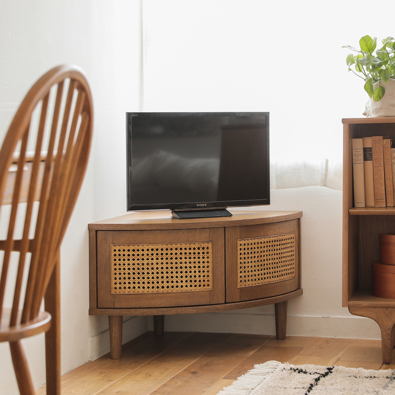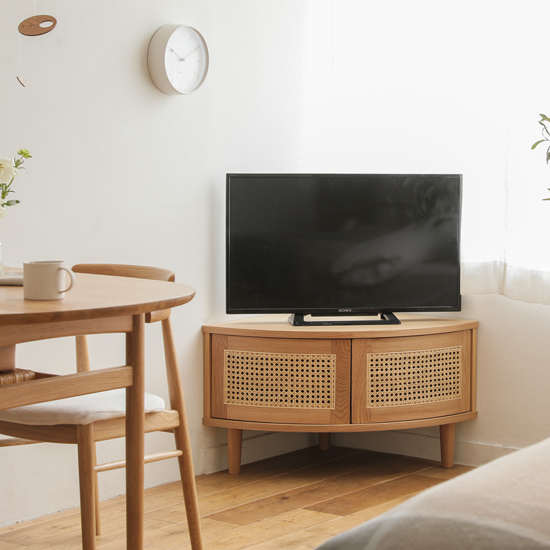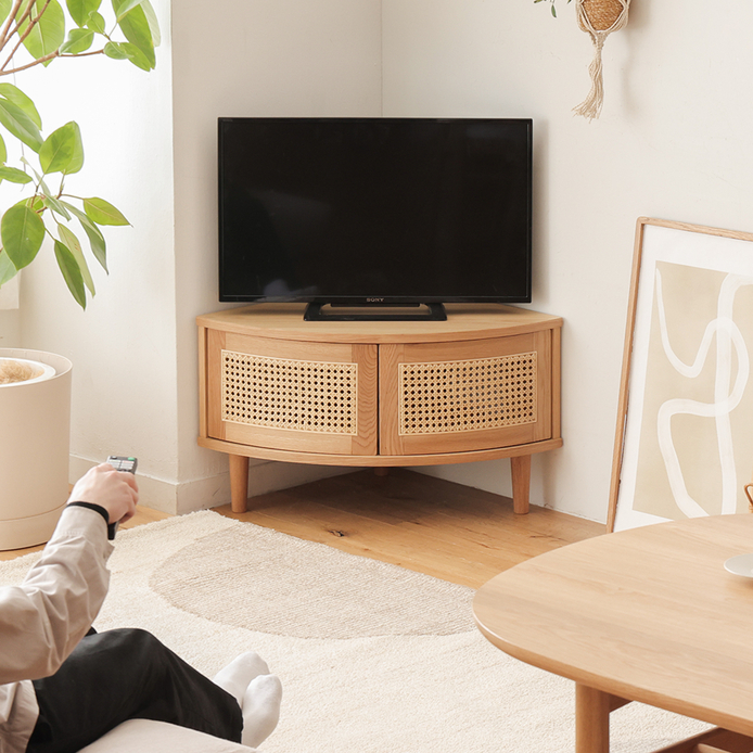お部屋の角にぴったりと収まる、スリムなコーナーテレビボード。