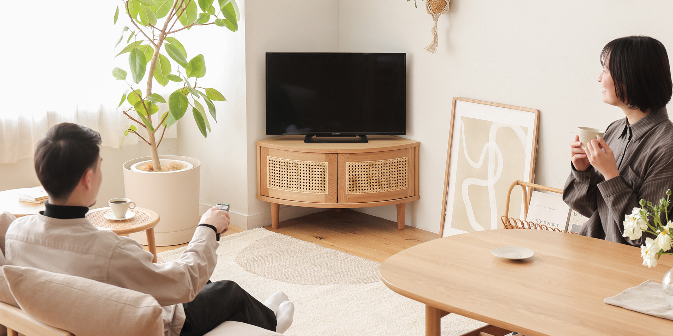 世の中には、数多くのコーナーテレビボードがあります。その中でも「RattanMix」は、次の3つのこだわりを詰め込んでいます。