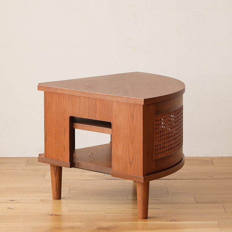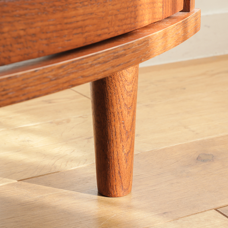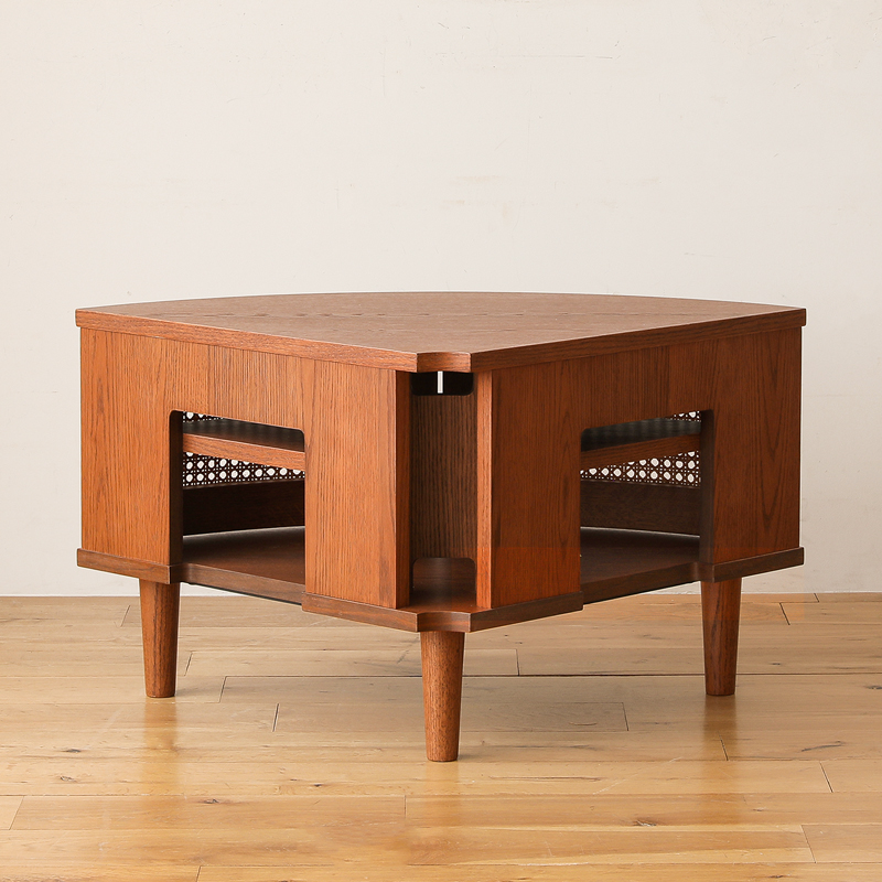 美しいカーブを描く「扇形」の扉に、すらりと伸びたスタイリッシュな脚。あたたかみのある木の風合いに、思わず引き込まれました。