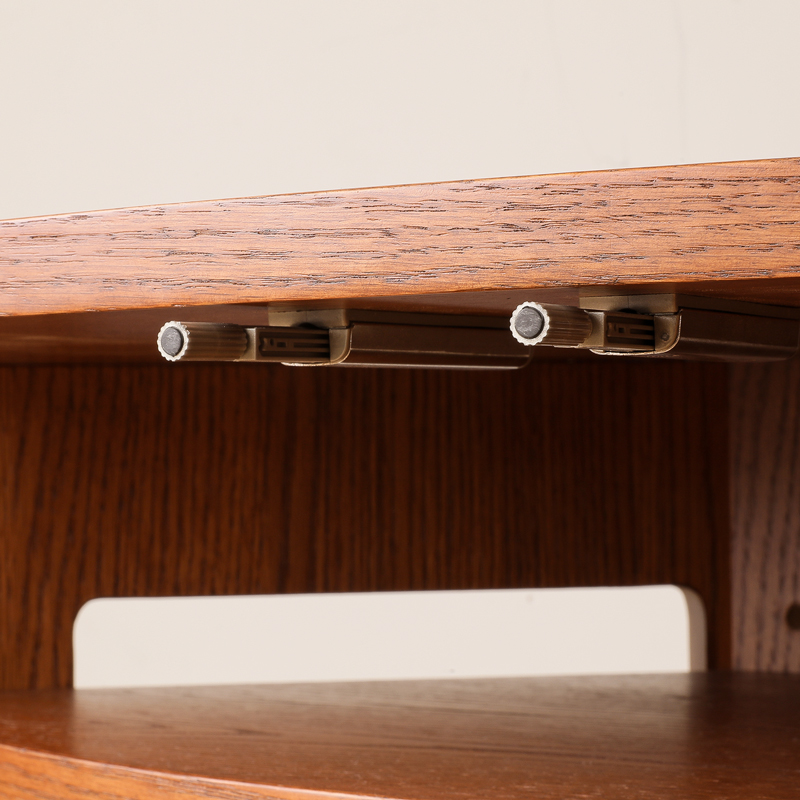 扇形の形状に合わせ、「曲木加工」と呼ばれる木工技術で、扉にもなめらかなカーブを施しています。