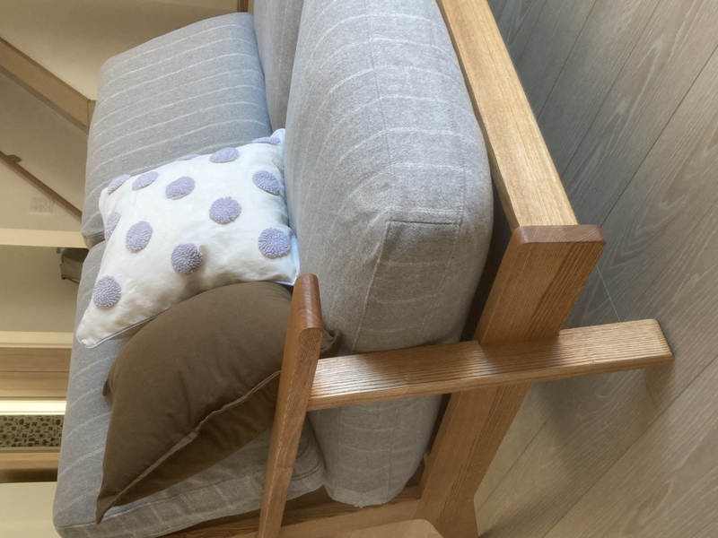 NOANAは、北欧デザインからインスピレーションを受けてデザインしたソファーなので「グレーストライプの生地を使ったら、きっととても素敵だろうな」と思っていましたが、価格面での採用が難しく、長らく断念していました。