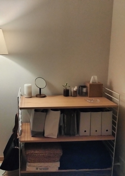こちらのラックは、奥行きがあって大容量で、カラーボックスに詰め込んでいた沢山の書類やプリンターが、すっきり納まりました。