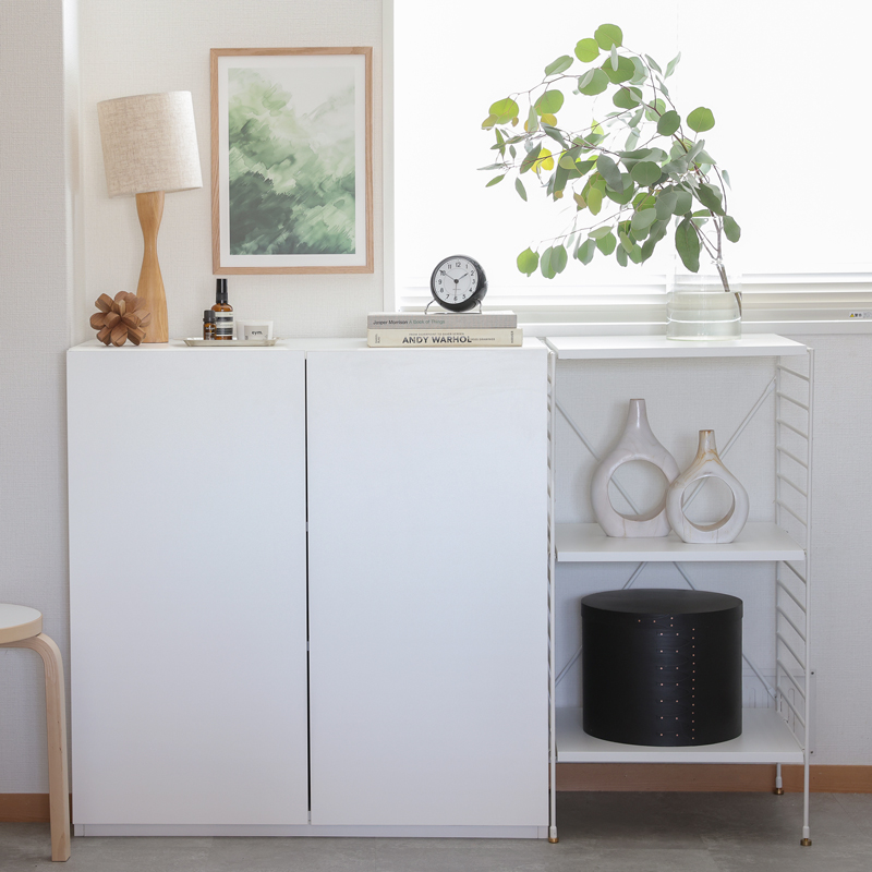 棚やキャビネットの位置を細かく決めることができるので、収納物を限定しません。