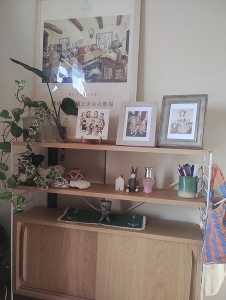 ラタンキャビネットには、扉部分に籠目模様のラタンを採用しました。