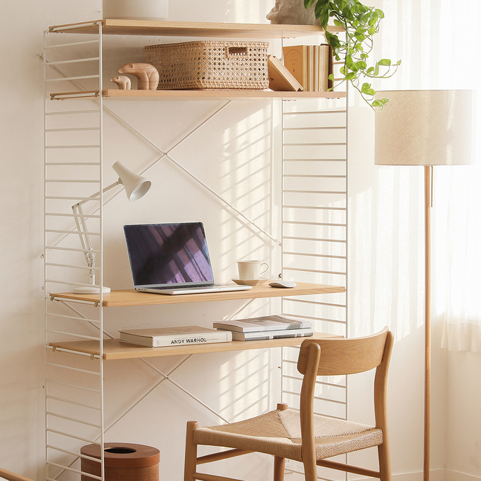 壁面を覆う大型のブックシェルフから、コンパクトなシェルフやTVボードまで、使う場所に合わせた様々な組み合わせが可能です。