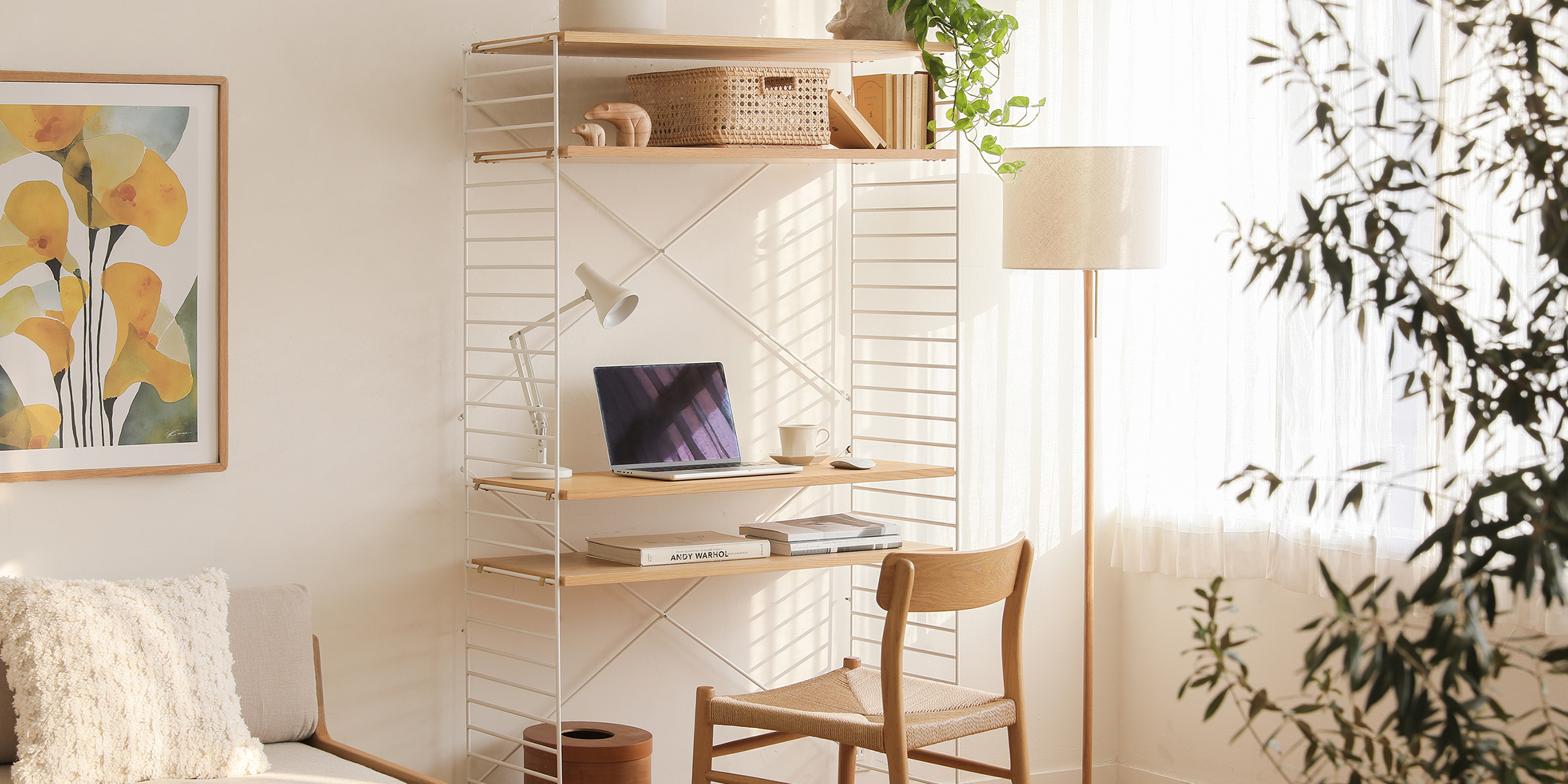 ベッドをダブルからシングルに変え、空いたスペースを使って機能的なデスクワークスペースを作りたかったのですが、イメージ通りにシンプルで洒落てるののに機能的なスペースができました!