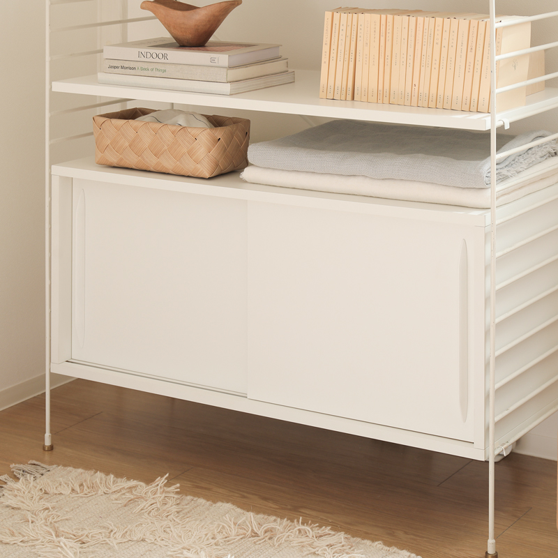 棚やキャビネットの位置を細かく決めることができるので、収納物を限定しません。