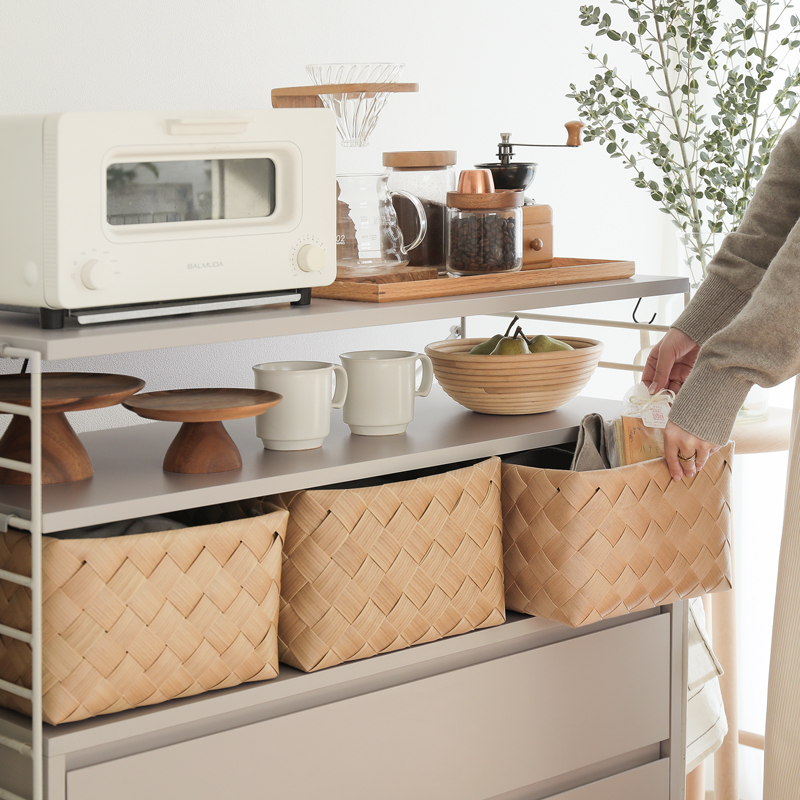 開口部が大きく出し入れしやすいドロワー。衣類や食器などを片付けるのに向いています。
