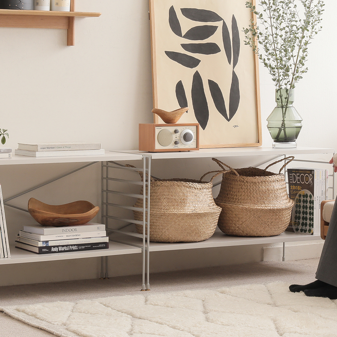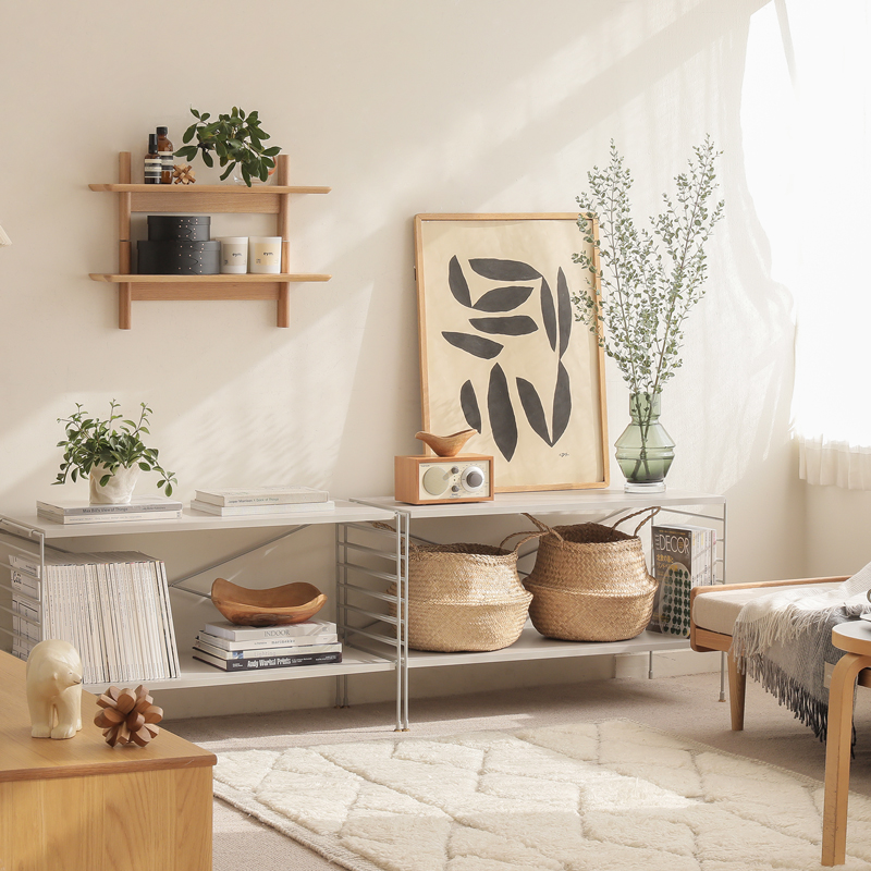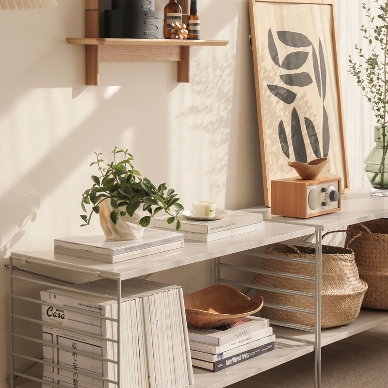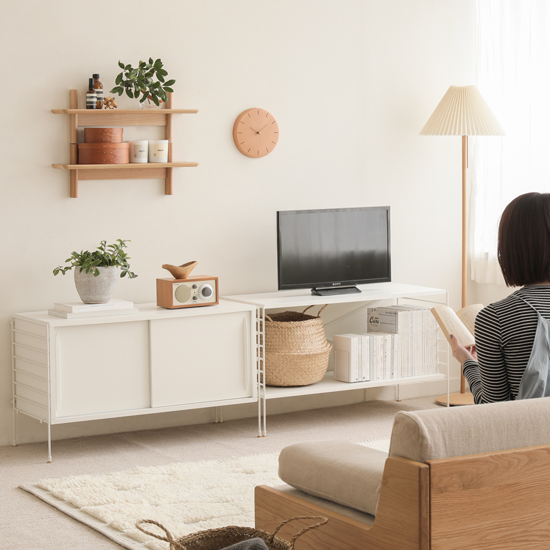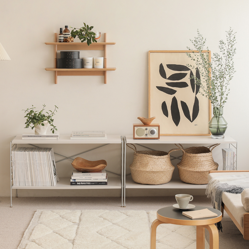 壁面を覆う大型のブックシェルフから、コンパクトなシェルフやTVボードまで、使う場所に合わせた様々な組み合わせが可能です。