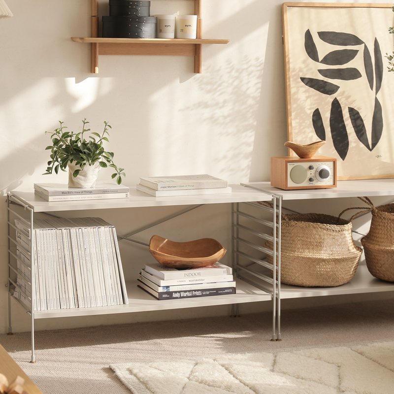 極限まで細くしたアイアンを採用しており、圧迫感を感じさせないフレームが、シャープでスタイリッシュなユニットシェルフを作り上げてくれます。
