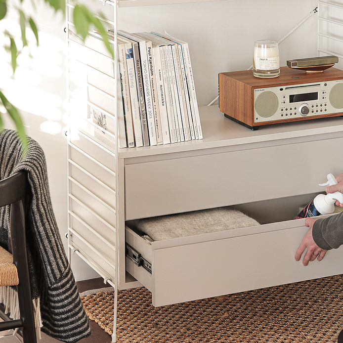 開口部が大きく出し入れしやすいドロワー。衣類や食器などを片付けるのに向いています。