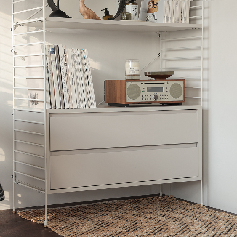 壁面を覆う大型のブックシェルフから、コンパクトなシェルフやTVボードまで、使う場所に合わせた様々な組み合わせが可能です。