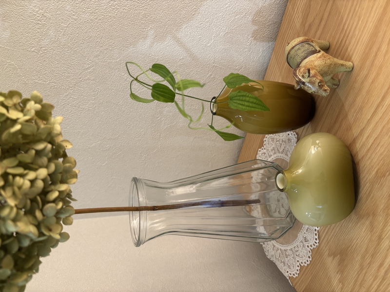 同じグリーンのドライフラワーと購入したフラワーベースを
