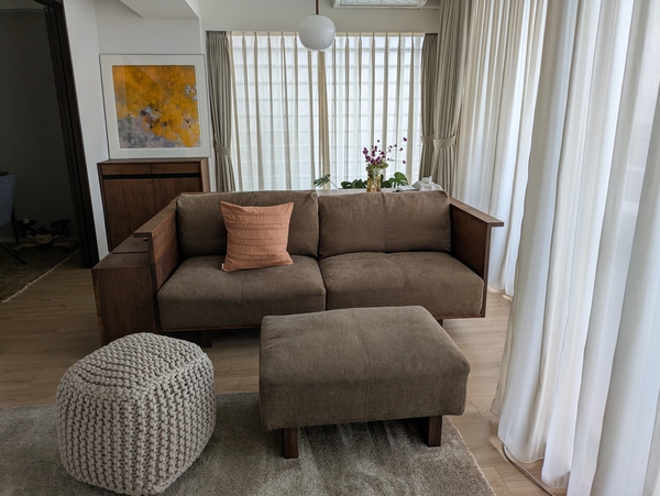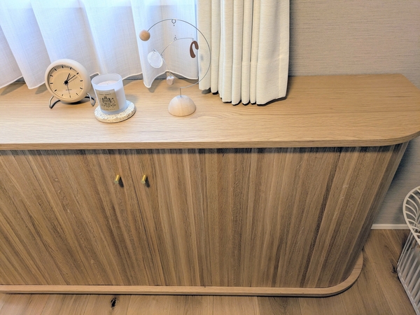 心配事は横幅のある家具を置くことによる圧迫感だったのですが、リセノさんのボードは奥行きが最新のテレビに合わせて作られていたので、一か八かで購入しました。