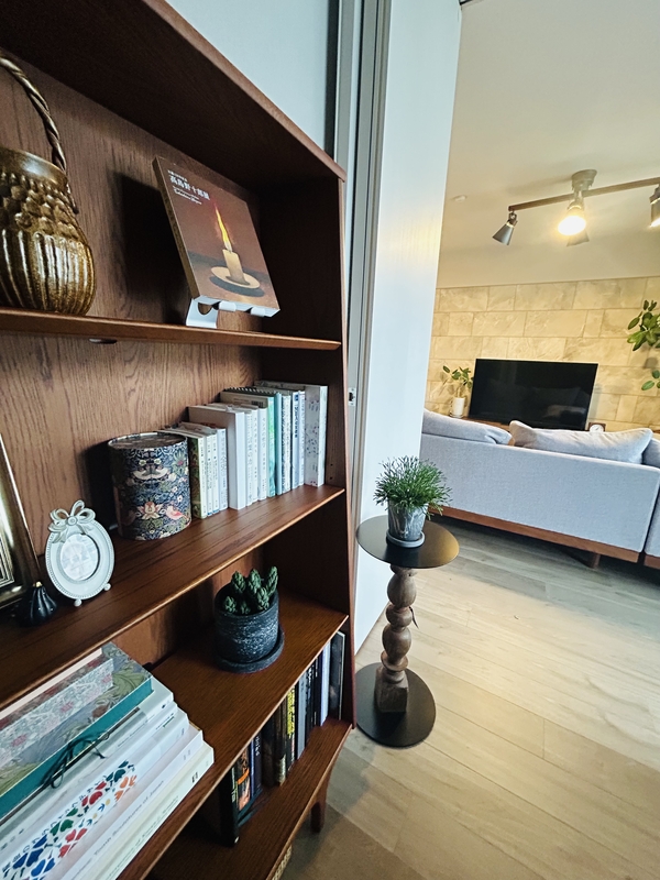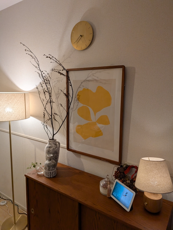 これで黒っぽい小物を置いても違和感がなくなりました。