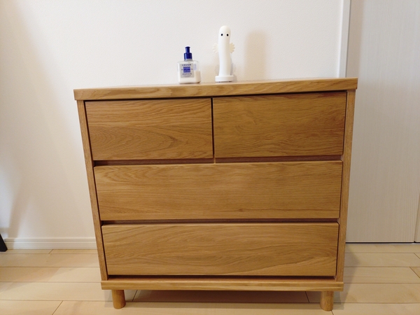 ミッドブラウンの色が好きなのですが、どうしても他社の家具とも合わせ易いのはナチュラルカラーなので、メインダイニングのテーブルとしてこちらのナチュラルを購入し、その後はリセノさんの家具を中心にして部屋を整えています。