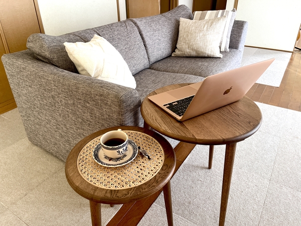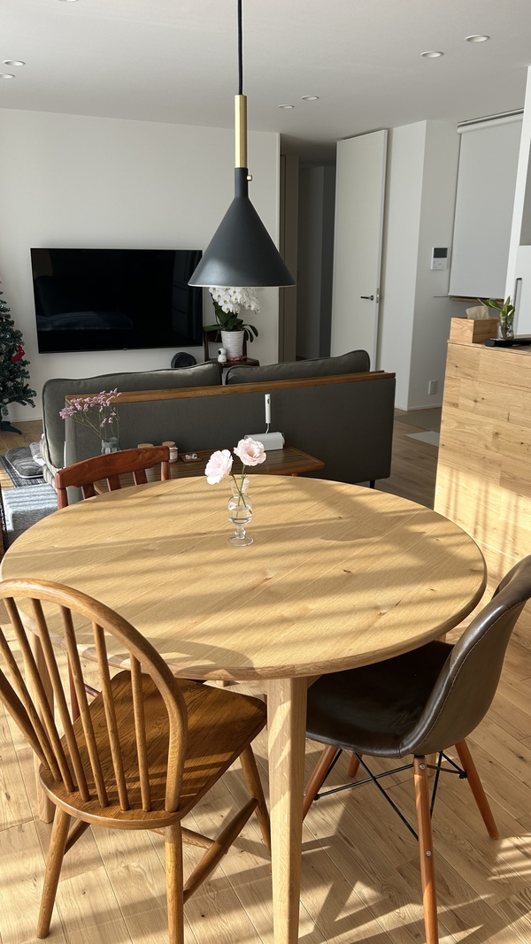 普段使いには110cmの円形でゆったりと十分だけど、家族や友人が集まる時には延長して使えるforkに目がとまりました。