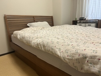 シングルのボックスタイプ、淡いブラウン寄り、黄色味のない茶系、薄いうすい赤みを感じる茶系のグレージュで、どの床や壁紙やベッドの色でも合わせやすいと思います