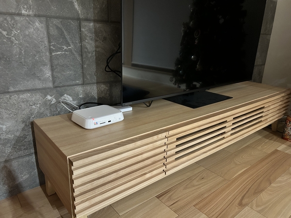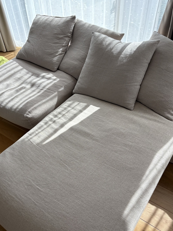 色味はブラウンでも良かったかなと思いますが、サイズ感もあり大きな存在なので、ナチュラルで床と同系色で主張が少ないくらいでちょうど良さそうかな。