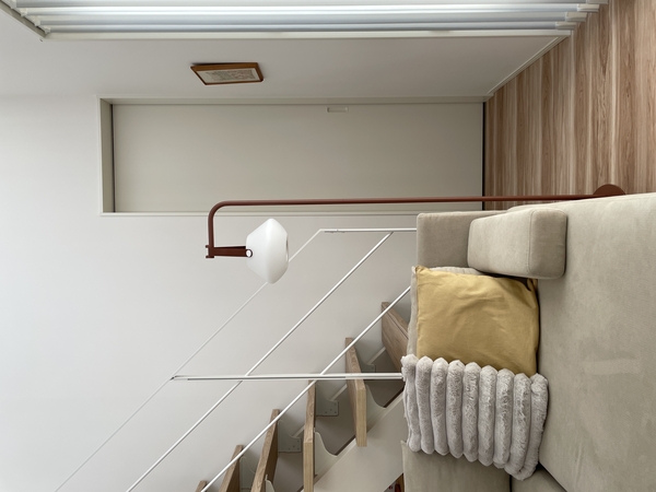 他の照明と組み合わせれば、明るさを最小に落としても問題なくつかえます。白をベースにした空間に、クリーム色は浮くかなと心配していましたが、落ち着しのある色で違和感なく馴染んでくれています。