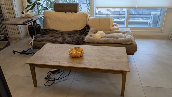 以前から使っていたテーブルはアパート用に購入した物だったので、90cmと少し小ぶりで、