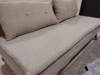 私は部屋のコーナー部分に合わせて設置しましたが、肘掛けやバックスタイルもどの角度から見ても違和感なく素敵なので、リビングの真ん中などでも場所を選ばず設置出来るかと思います。