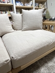 自宅購入時に新調した何の問題もなかったソファを20年ぶりに買い替える決断をさせてくれた座り心地、そして福岡店の大塚さんの丁寧な接客が決め手となり、新しいRe:CENOのソファを迎え入れることができました。