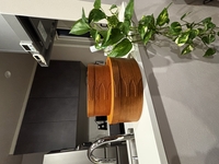次に先日ウォールナット色の丸テーブル(90cm)を購入したのでその上に