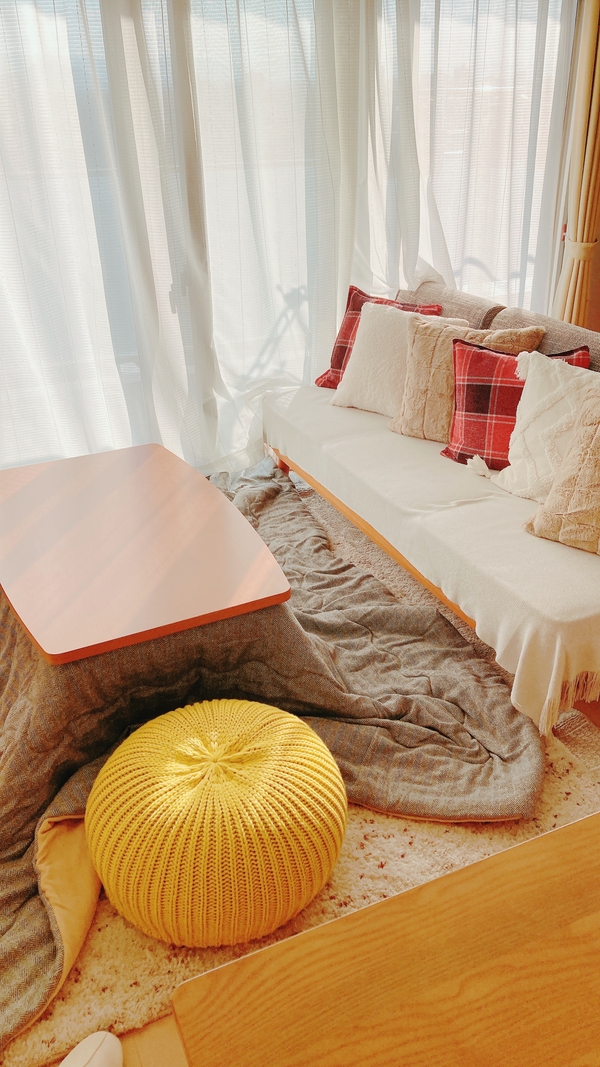 リビングがあまり広くないので、暖房器具を置くことができず困っていたところ、こたつテーブルを見つけました。