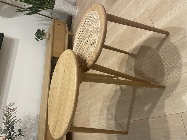ダイニングチェアとして2種類を合わせて使っていますが、異なる形状や素材でも違和感なく置けています!