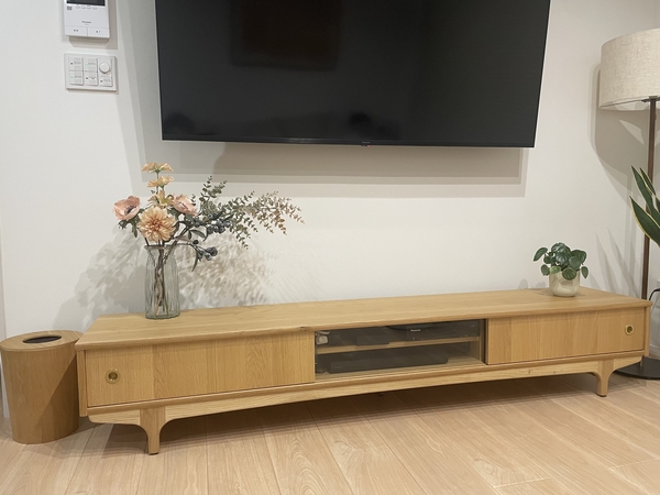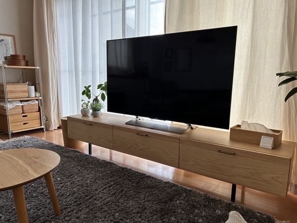 高さがあまりないので、これまで置いていたテーブルより大きいのになぜか部屋が広く見えます。明るい色をチョイスしたのも良かったです。