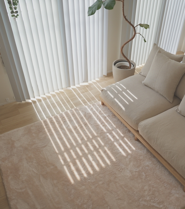 当初はデザインを優先して別のラグを検討していましたが、店頭で実物を比較させていただき、毛足が長く柔らかいこちらのラグに決めました。