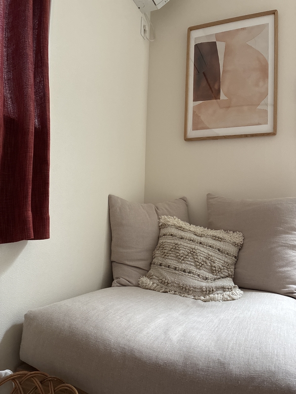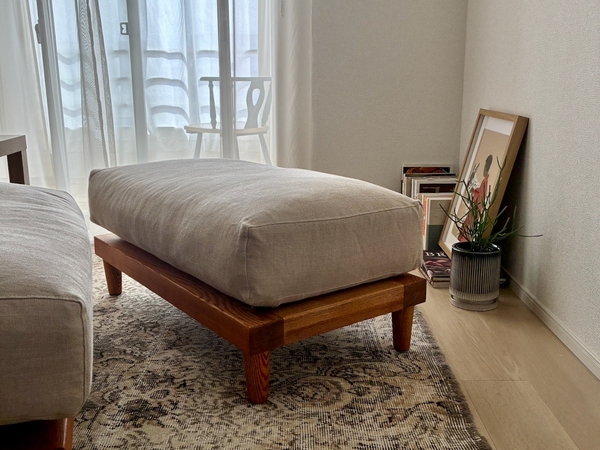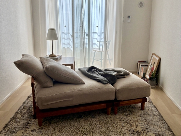 部屋が抜け感なくきっちりしていた印象だったのですが、こちらを置くと肩の力が抜けるような、リラックスできる雰囲気になります。