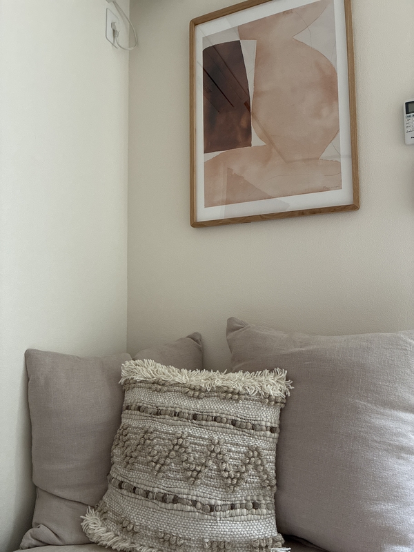 ベージュや白の家具で統一しているので、この絵はとても馴染みます。買って良かったです。