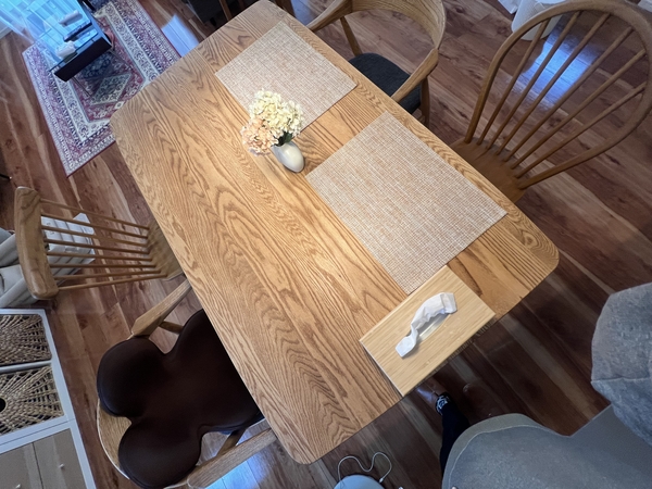 テーブルの木目が綺麗です。暖かな冬を過ごすことができました。