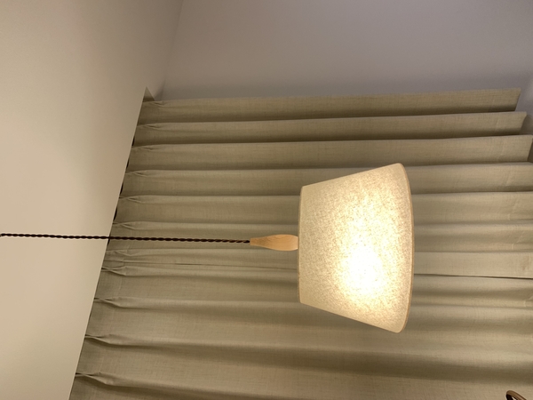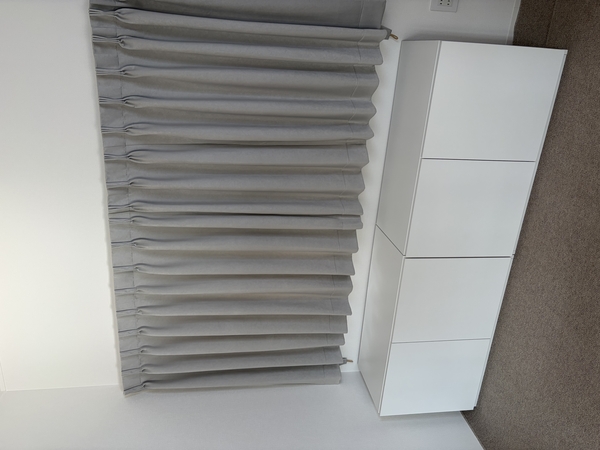 ひだが無くて、下の折り返しもないので見た目がとてもシンプルで素敵です。白い壁とも馴染んでいい感じです。