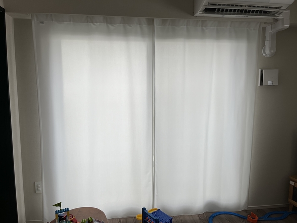 しっかりした生地で今まで使っていたレースカーテンより丈夫な感じがしますし、直射日光を防ぎつつ、暗くなりすぎないですし、遮像効果もあるのでカーテンをすることでお部屋がすっきりして見えます。