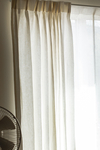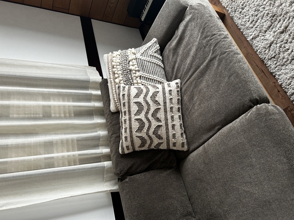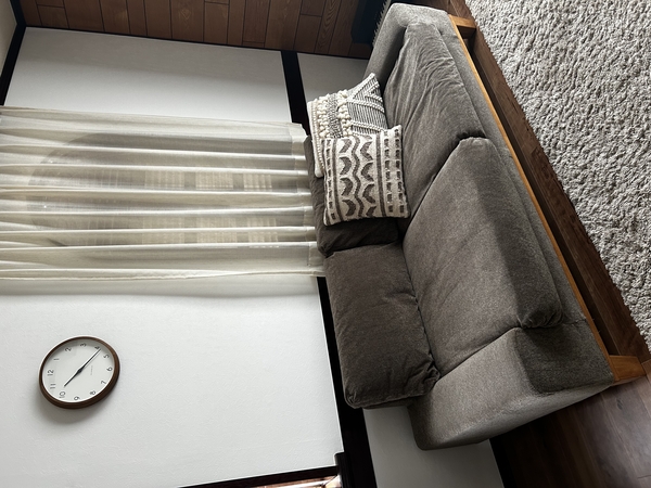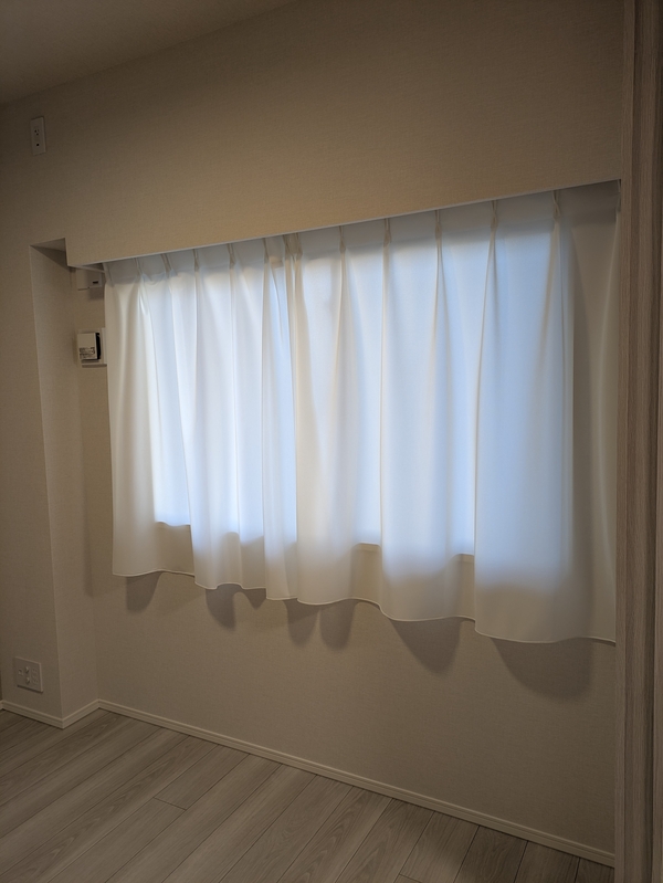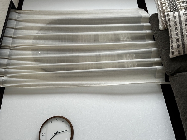 ②レースカーテンといっても部屋の中から外が透けるほどの透け感はないので、「外→内」だけでなく「内→外」も同様に見えません。個人的に庭の緑や空の色を堪能したいタイプなのでここが寂しいなと感じました。