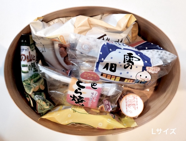 Lサイズだとファミリーサイズのオヤツを3パック、その他小さなグミ系をたくさん入れても全然余裕です。