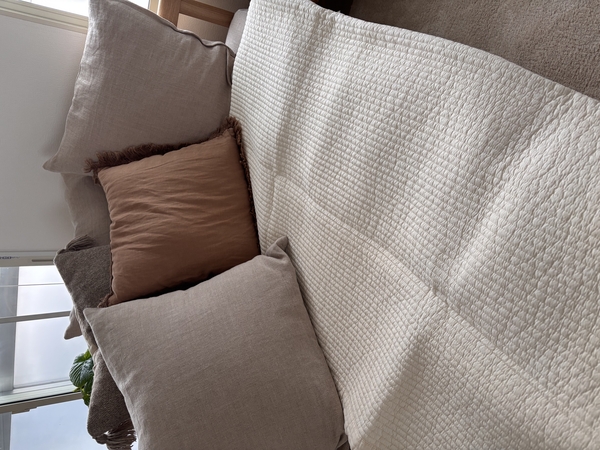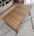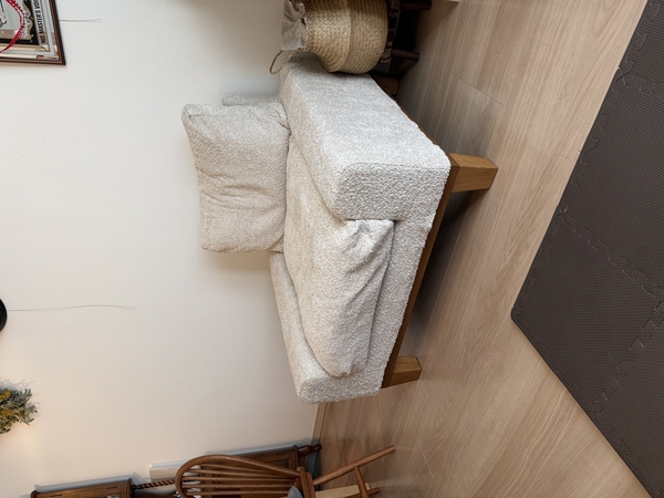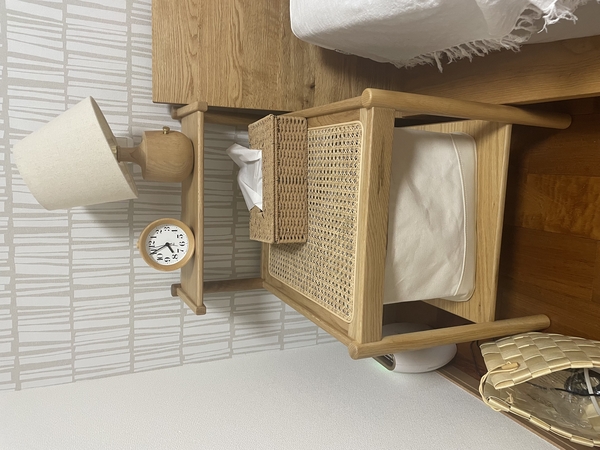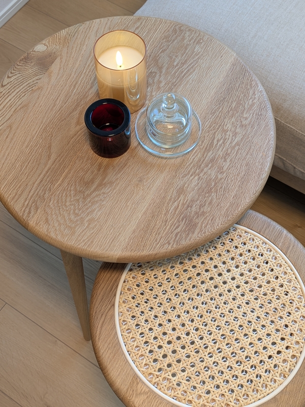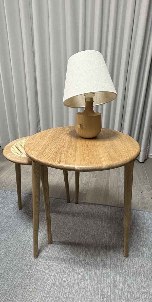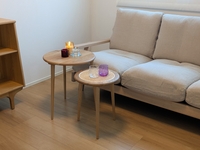 NOANAソファに合わせると高さもピッタリ。普段はソファ横の観葉植物置き場のスペース幅に寄せておけるし、使う時はスッと出せます。夫婦時間にひとり1台ずつ使えるところが何気に便利かと。息子は早速Switchを立てて楽しんでいました。ラタンもしっかりしていて、何よりもテーパードなハの字脚がすばらしく好みで本当に軽やかです。NOANAナチュラルより少しカスタード色で美しく、届いたものは木目もキレイでした。大切に使います!