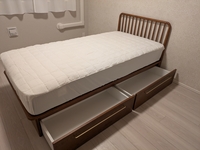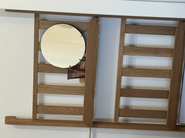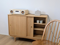 2台きちんと揃って、生活に必要なもの・飾るもの・壁のアートとのバランスを考えるのが今から楽しみ。脚が可愛いですし、掃除もしやすく機能的。奥行きの浅さに関しては、巷に売っているファイルボックスやケースが入らない悲しみはありますが…工夫して日々の暮らしに沿う使い方を研究します。