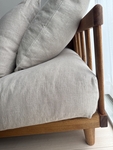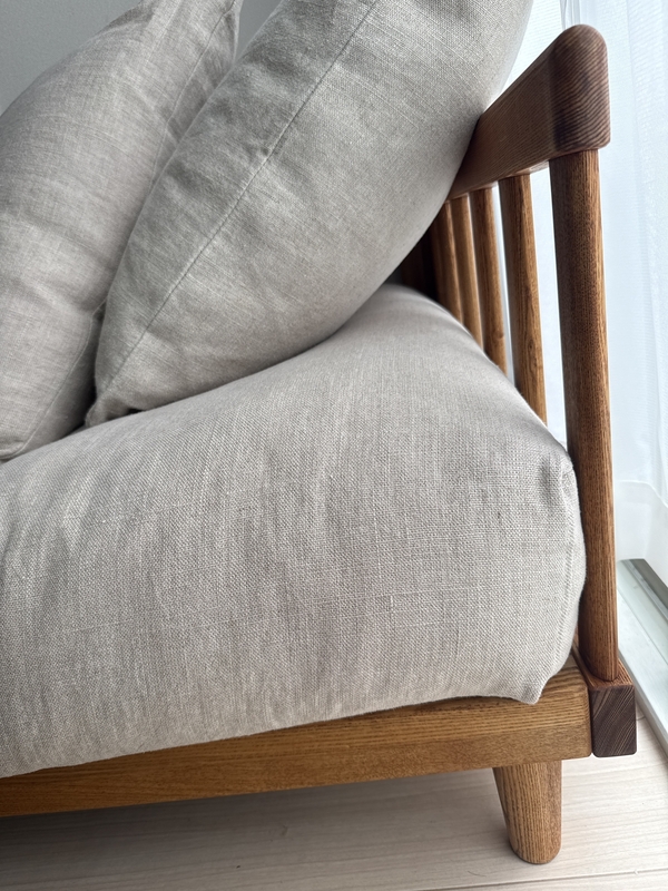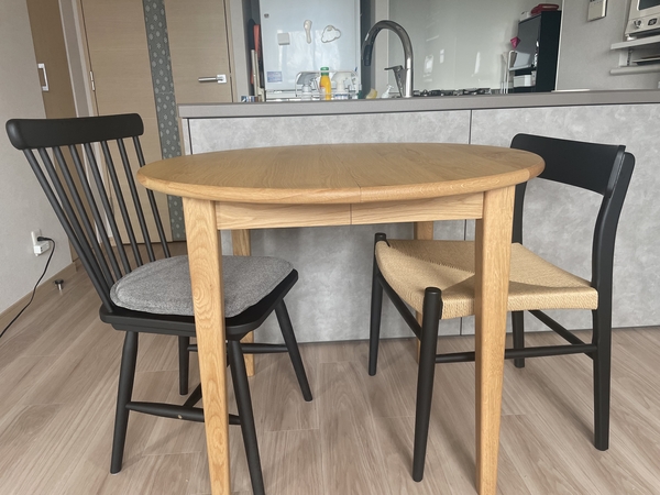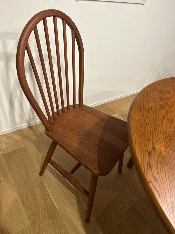 木目の表情も落ち着いていて、主張しすぎないのに質感はしっかり感じられます。脚の細さや天板の厚みも含め、全体のプロポーションが軽やかで、部屋に置いたときに“抜け”が出るのもポイントでした。
