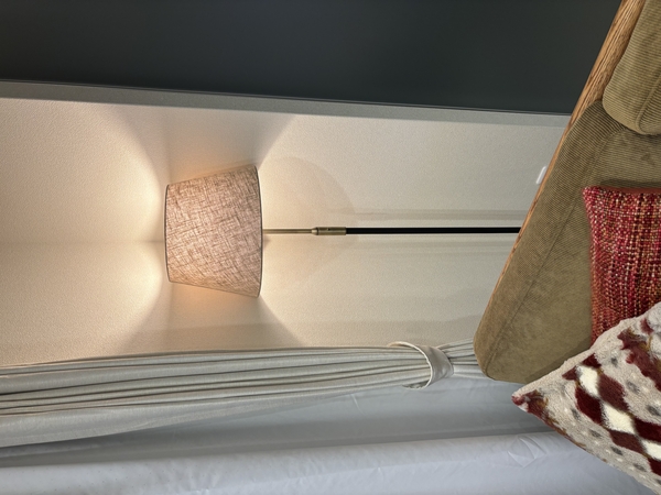 壁紙や木の家具、外の景色ともなじみやすく、空間全体をバランスよくまとめてくれる印象でした。